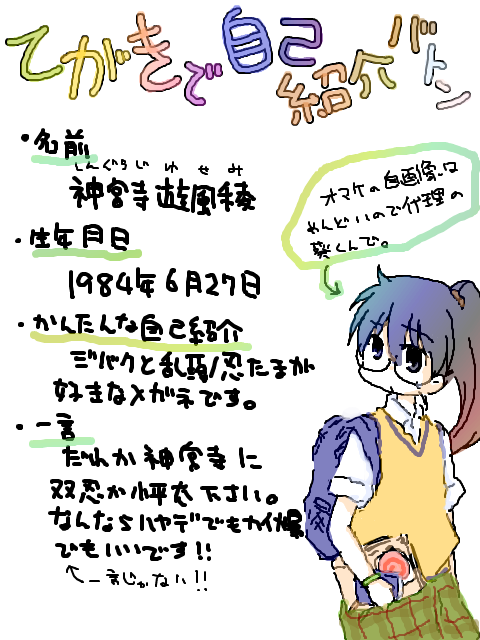 手書きで自己紹介バトン